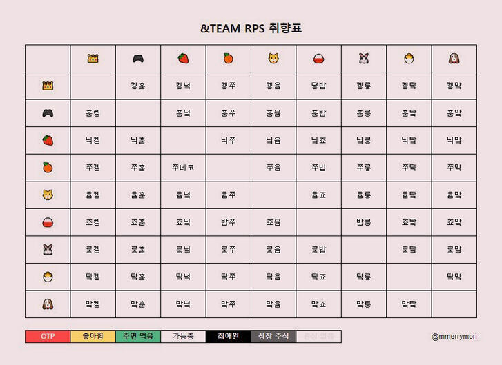 Hello Luné! Welcome to a simple guide to censoring for the &RPS/RPF community.Aside from the usual group censoring (like &T instead of &TEAM), it's also important to censor their names when talking about ships publicly to avoid the members or non-RPS fans finding RPS tweets when searching on Twitter. This can be through the use of emojis, nicknames or sseobang (Korean search prevention) names!Though you are not required to follow this guide, RPS censoring is a common phenomenon across K-Pop RPS fandoms including &RPS and it is considered common courtesy in our fandom to censor ship/idol names for the above reasons.Here are the different ways of censoring the members' names: